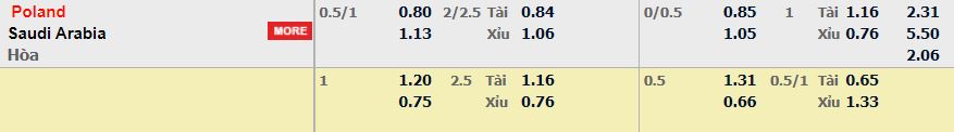 • Mức kèo nhà cái cược chấp trận này: Ba Lan chấp 0,75 trái. Ba Lan ăn 0,89. Ả Rập Saudi ăn 1,13