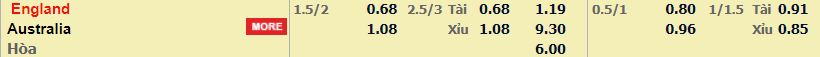 - Mức kèo nhà cái cược chấp trận này: Anh chấp 1,75 Trái. Anh ăn 0,68. Australia ăn 1,08