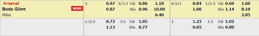 - Mức kèo nhà cái cược chấp trận này: Arsenal chấp 2 Trái. Arsenal ăn 0,97. Bodo Glimt ăn 0,87