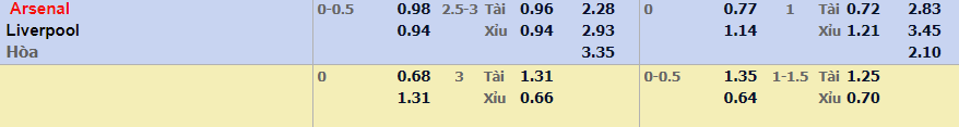 - Mức kèo nhà cái cược chấp trận này: Arsenal chấp 0,25 Trái. Arsenal ăn 0,98. Liverpool ăn 0,94