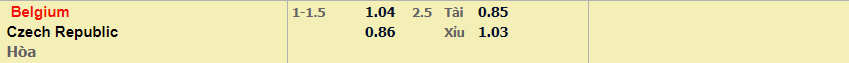 - Mức kèo nhà cái đưa ra trận này: Bỉ chấp 1,25 Trái. Bỉ ăn 1,04. Cộng hòa Séc ăn 0,86