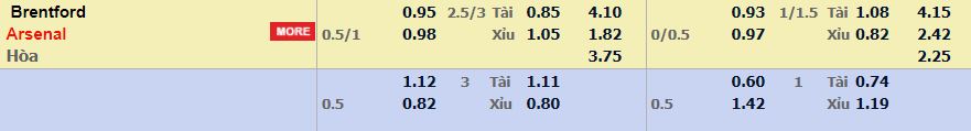 - Mức kèo nhà cái 188bet cược chấp trận này: Arsenal chấp 0,75 Trái. Brentford ăn 0,95. Arsenal ăn 0,98