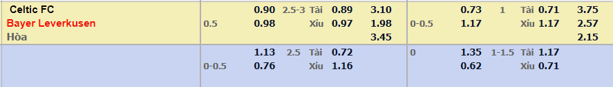- Mức kèo nhà cái đưa ra trận này: Bayer Leverkusen chấp 0,5 Trái. Celtic ăn 0,90. Bayer Leverkusen ăn 0,98