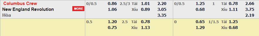 Tỷ lệ cược Columbus Crew vs New England – 06h30 – 24/07/2022