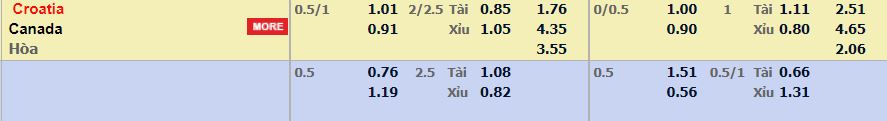 Tỷ lệ kèo bóng đá Croatia vs Canada – 23h00 – 27/11/2022