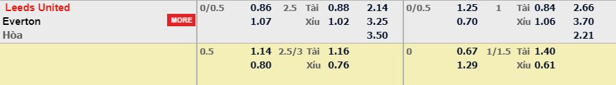 - Mức kèo nhà cái W88 cược chấp trận này: Leeds chấp 0,25 Trái. Leeds Utd ăn 0,86. Everton ăn 1,07