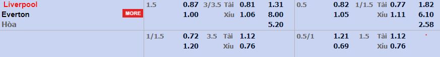 - Mức kèo nhà cái cược chấp trận này: Liverpool hấp 1,5 Trái. Liverpool ăn 0,87. Everton ăn 1,00