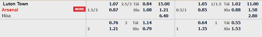 - Mức kèo nhà cái cược chấp trận này: Arsenal chấp 1,75 Trái. Luton ăn 1,07. Arsenal ăn 0,87