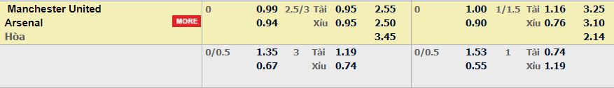 - Mức kèo nhà cái TF88 ra cược chấp trận này: Hòa – Được – Thua. Man Utd ăn 0,99. Arsenal ăn 0,94
