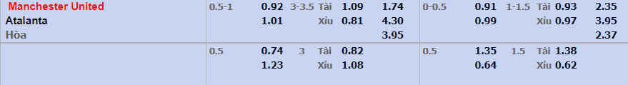 - Mức kèo nhà cái cược chấp trận này: Manchester Utd chấp 0,75 Trái. Manchester Utd ăn 0,92. Atalanta ăn 1,01