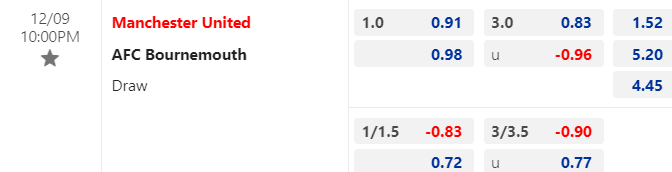 Tỷ lệ kèo bóng đá Manchester Utd vs Bournemouth – 22h00 – 09/12/2023