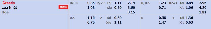 - Mức kèo nhà cái cược chấp trận này: Croatia chấp 0,25 Trái. Croatia ăn 0,85. Nhật Bản ăn 1,08