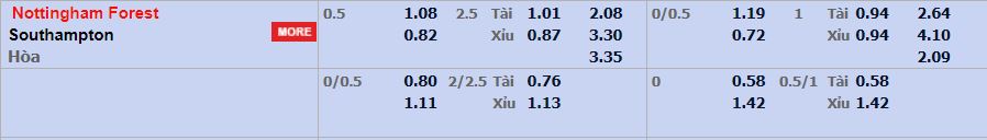 - Mức kèo nhà cái cược chấp trận này: Nottingham chấp 0,5 Trái. Nottingham ăn 1,05. Southampton ăn 0,82