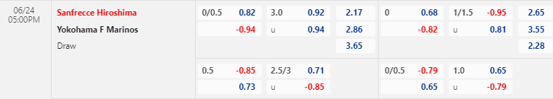 Tỷ lệ kèo bóng đá Sanfrecce Hiroshima vs Yokohama F. Marinos – 17h00 – 24/06/2023