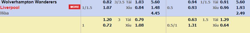 - Mức kèo nhà cái cược chấp trận này: Liverpool chấp 1,25 Trái. Wolves ăn 0,82. Liverpool ăn 1,07