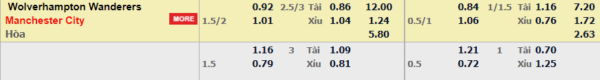 - Mức kèo nhà cái cược chấp trận này: Manchester City chấp 1,75 Trái. Wolves ăn 0,92. Manchester City ăn 1,01