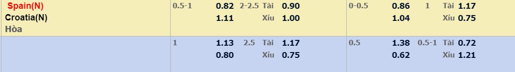 Tây Ban Nha được xác định là đội cửa trên trong kèo đấu này, mặc dù vậy thì trong những lần đối đầu ở những VCK Euro trước đây thì thành tích đối đầu đang là ngang bằng. 2 lần gần nhất 2 đội đối đầu nhau trong năm 2018 cũng chứng kiến 1 thắng và 1 thua dành cho bò tót. Với phong độ làm bàn thiếu thuyết phục từ cả 2 đội bóng, chiến thắng chỉ được quyết định ở những sai lầm. Tây Ban Nha có thể phải trả giá đắt khi cầm bóng vượt trội nhưng lại không thể có bàn thắng, với kèo chấp 0,75 thì hãy đầu tư vào Croatia.