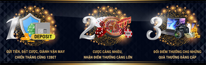 Để nhận điểm thưởng, người chơi phải đảm bảo trở thành thành viên của 12bet và tham gia đặt cược vào các sản phẩm có tại nhà cái. Điểm thưởng trong 12Bet được chia ra 5 hình thức: Số ngày hoạt động, Lượng tiền gửi, Doanh thu cược, Thưởng sinh nhật và Dự đoán. Trong đó, Dự đoán là hình thức tích điểm sắp được ra mắt trong thời gian tới.